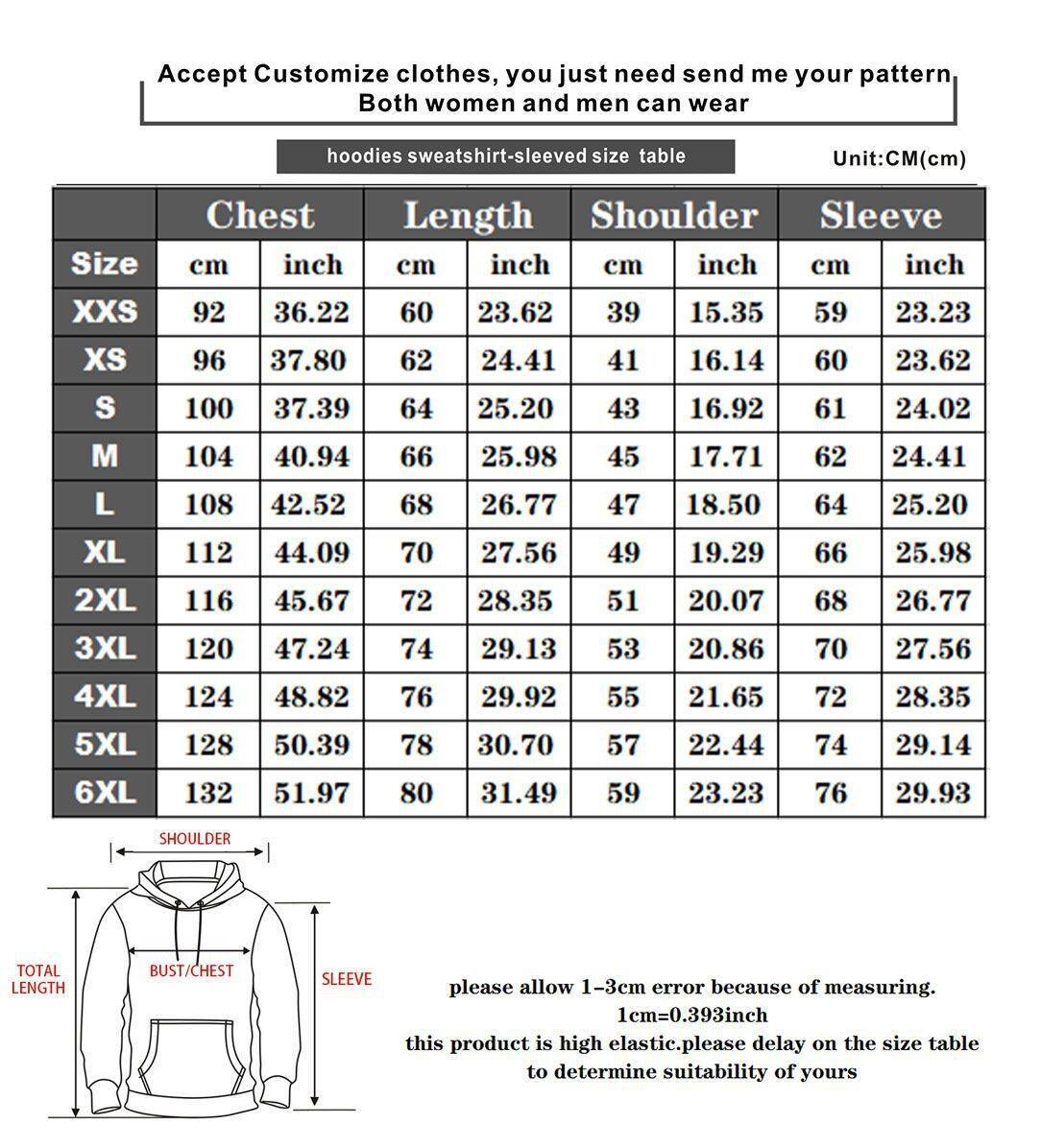 Sizes: S, M, L, XL, XXL, XXXL, XXXXL, 5XL, 6XL